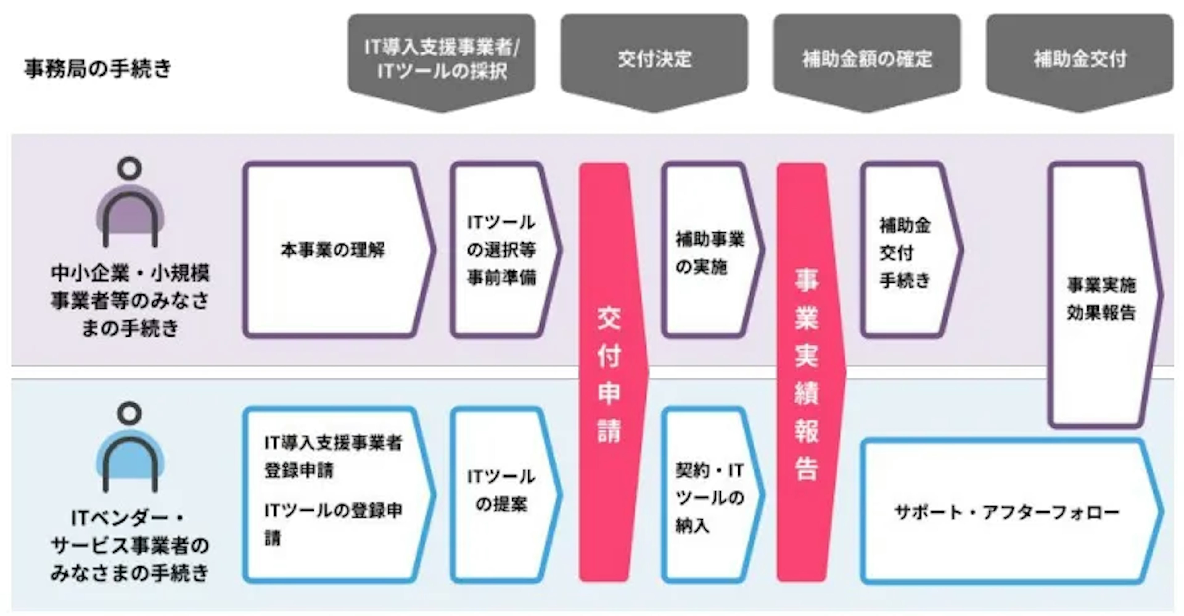 引用:「新規申請・手続きフロー(中小企業・小規模事業者の皆様の手続き)|IT導入補助金」