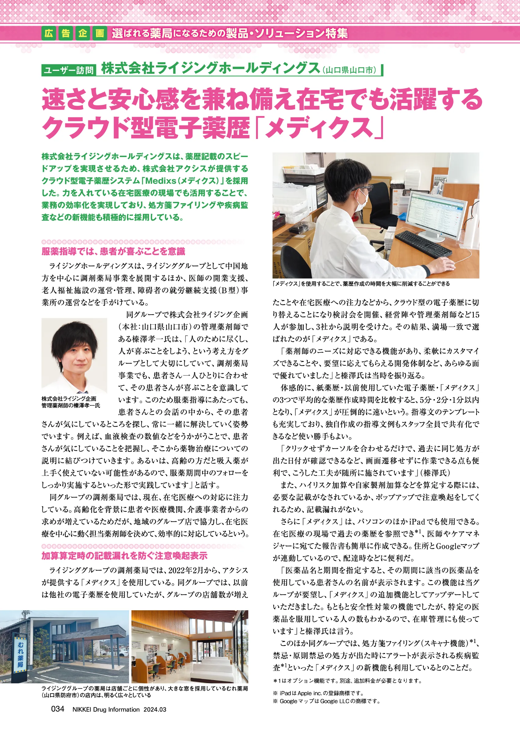 速さと安心感を兼ね備え住宅でも活躍するクラウド型電子薬歴「メディクス」
