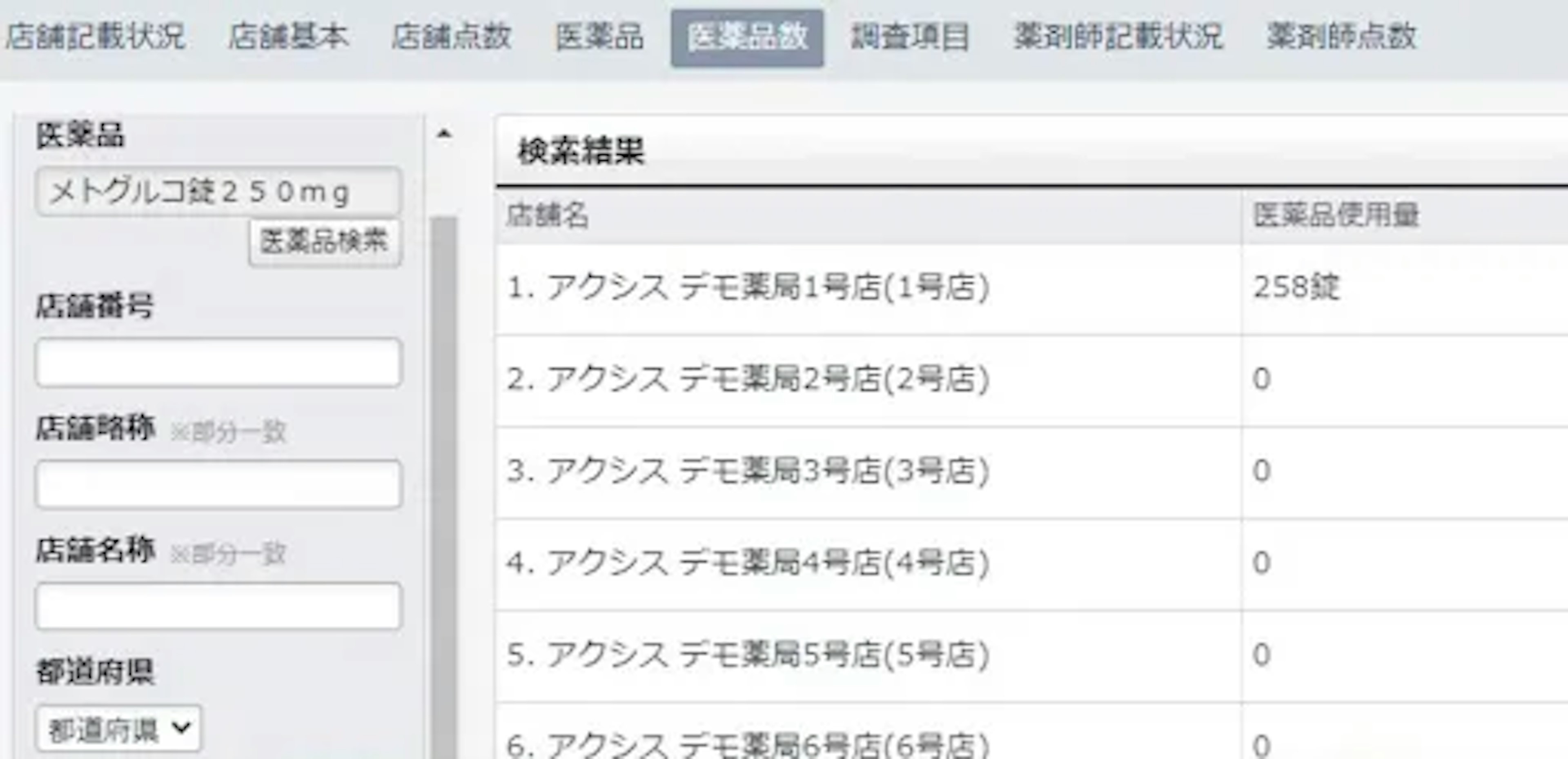 他にも、店舗ごとの来局者の年齢層やピークタイム、薬歴の記載状況を確認可能。