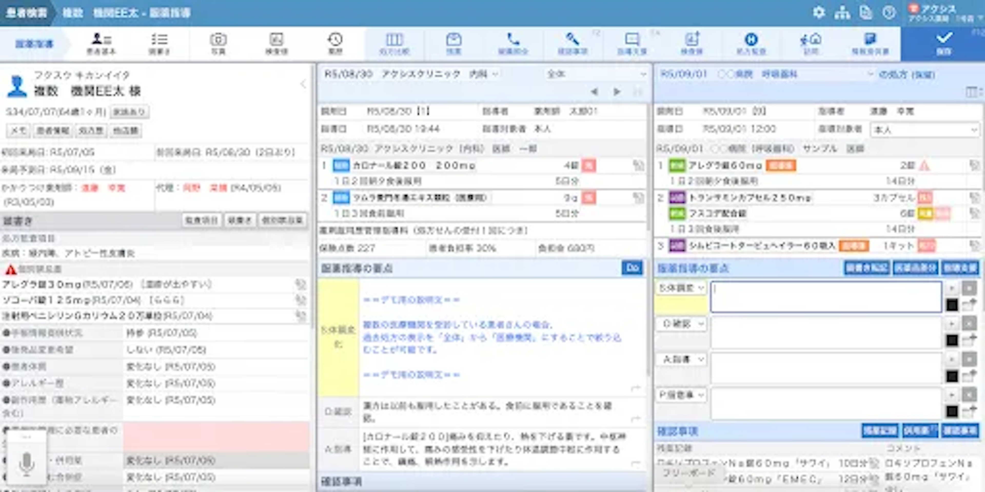 ↑薬の色分けや、処方監査のアイコンが表示。最小限のクリックで、欲しい情報にアクセス可能