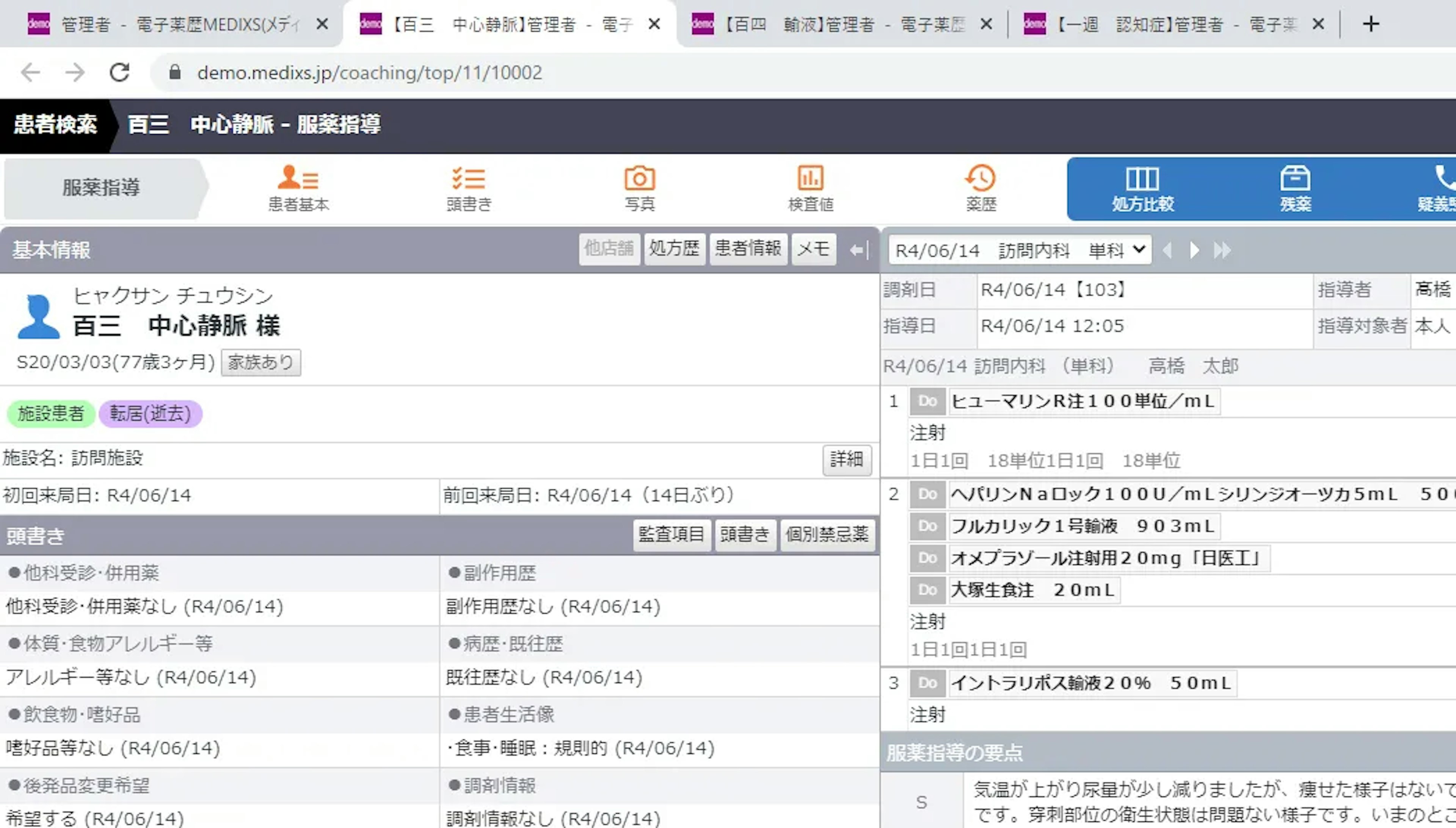 ↑ブラウザで動くので、複数の患者さんをタブで開くことが可能