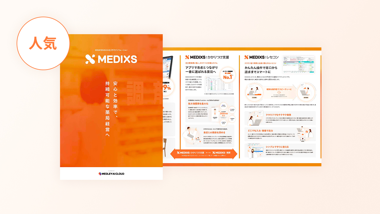 薬局のあらゆる業務を効率化し、患者対応の質を高める「MEDIXS」の全体像を1冊にまとめました。